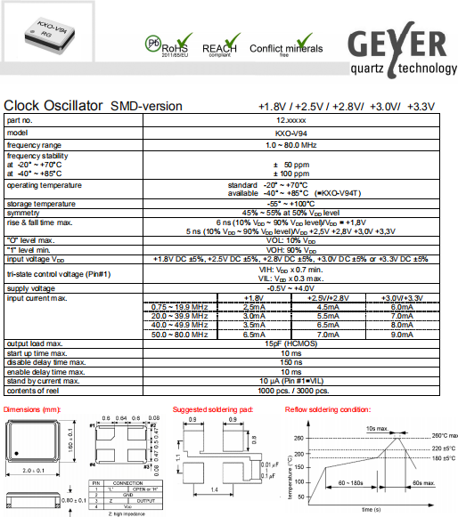 Geyer晶振,KXO-V94晶振,普通有源晶體振蕩器.貼片式石英晶體振蕩器,低電壓啟動功率,并且有多種電壓供選擇,比如有1.8V,2.5V,3.3V,3.8V,5V等,產品被廣泛應用于,平板筆記本,GPS系統(tǒng),光纖通道,千兆以太網(wǎng),串行ATA,串行連接SCSI,PCI-Express的SDH / SONET發(fā)射基站等領域.符合RoHS/無鉛.