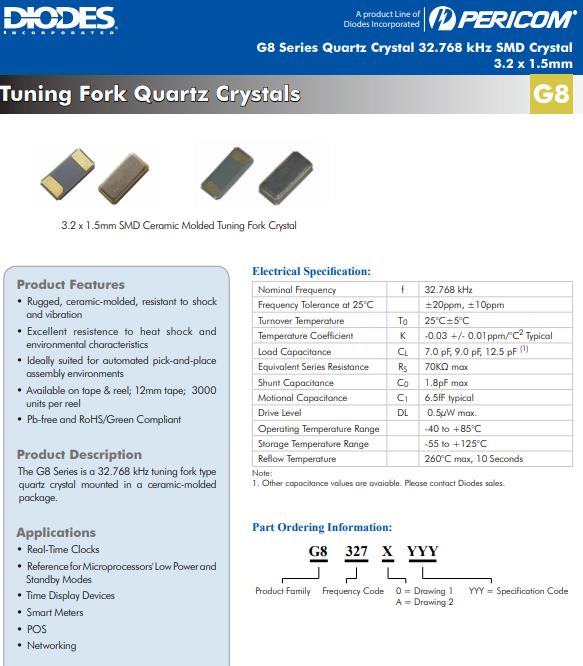 | G83270021 | Diodes晶振 | SaRonix-eCera™ G8 | 32.768kHz | - |